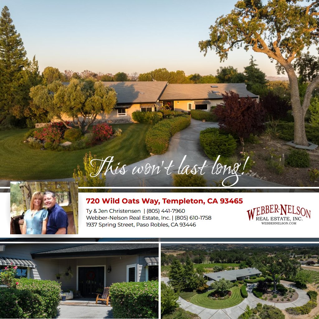 Enjoy luxury living at this prestigious Petersen Ranch gated estate, offering unforgettable views of rolling hills, vineyards, meticulously maintained mature trees, and beautiful landscaping. Step into a grand open living area with vaulted wood ceilings, a stone fireplace, and frameless windows framing majestic landscapes. The well-appointed kitchen features a walk-in pantry, a double oven, and a Wolf cooktop. The spacious Primary suite offers a state-of-the-art shower, a sauna room, and a private courtyard. The guest bedroom enjoys its own en suite bath and picturesque views. A library/office, laundry room with designer pet bath, and a temperature-controlled 1,700+ bottle wine cellar complete the main residence. Additionally, enjoy leisure time by the inground pool and spa, surrounded by lush greenery and mature trees. The estate also features plantation shutters throughout, a central vacuum system, and new floors. The large shop building provides guest quarters, a theatre room, and a workshop/garage with an epoxy floor. Energy efficiency is enhanced with a solar panel system. Outside, a stunning waterfall feature adds to the serene outdoor oasis. Nestled on 6+ acres, with 4 planted acres of Zinfandel grapes sold to a local winery, this estate is close to world-class wineries, downtown Templeton, and beautiful beach communities.