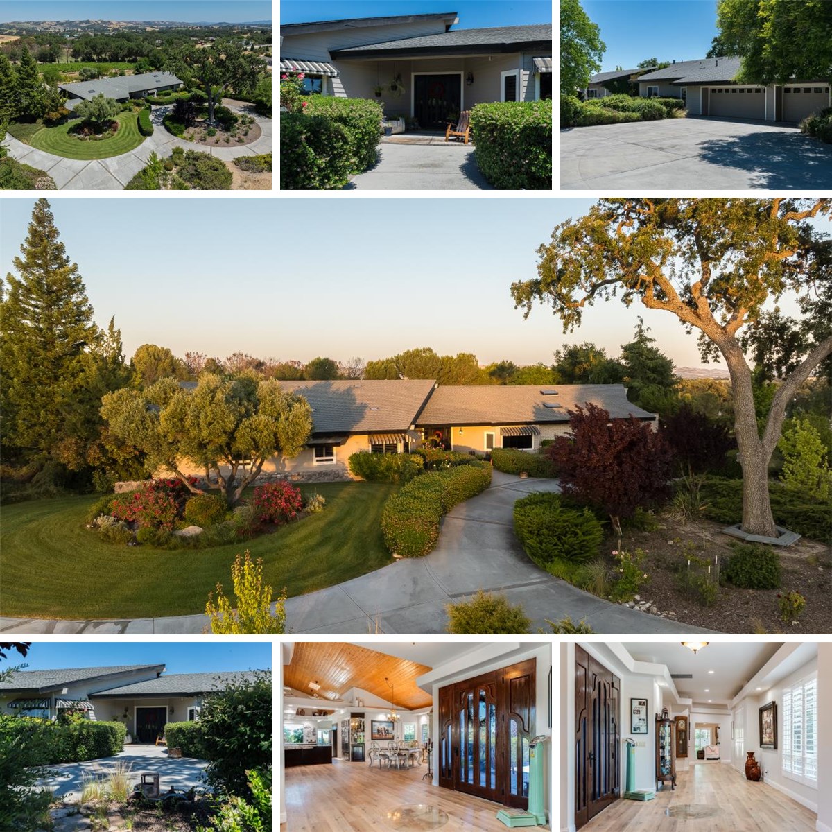 Enjoy luxury living at this prestigious Petersen Ranch gated estate, offering unforgettable views of rolling hills, vineyards, meticulously maintained mature trees, and beautiful landscaping. Step into a grand open living area with vaulted wood ceilings, a stone fireplace, and frameless windows framing majestic landscapes. The well-appointed kitchen features a walk-in pantry, a double oven, and a Wolf cooktop. The spacious Primary suite offers a state-of-the-art shower, a sauna room, and a private courtyard. The guest bedroom enjoys its own en suite bath and picturesque views. A library/office, laundry room with designer pet bath, and a temperature-controlled 1,700+ bottle wine cellar complete the main residence. Additionally, enjoy leisure time by the inground pool and spa, surrounded by lush greenery and mature trees. The estate also features plantation shutters throughout, a central vacuum system, and new floors. The large shop building provides guest quarters, a theatre room, and a workshop/garage with an epoxy floor. Energy efficiency is enhanced with a solar panel system. Outside, a stunning waterfall feature adds to the serene outdoor oasis. Nestled on 6+ acres, with 4 planted acres of Zinfandel grapes sold to a local winery, this estate is close to world-class wineries, downtown Templeton, and beautiful beach communities.